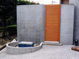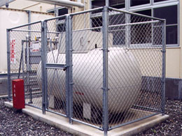 今までは50Kgボンベを沢山並べてお客様に供給していましたが今後は写真のような小型タンクを設置して